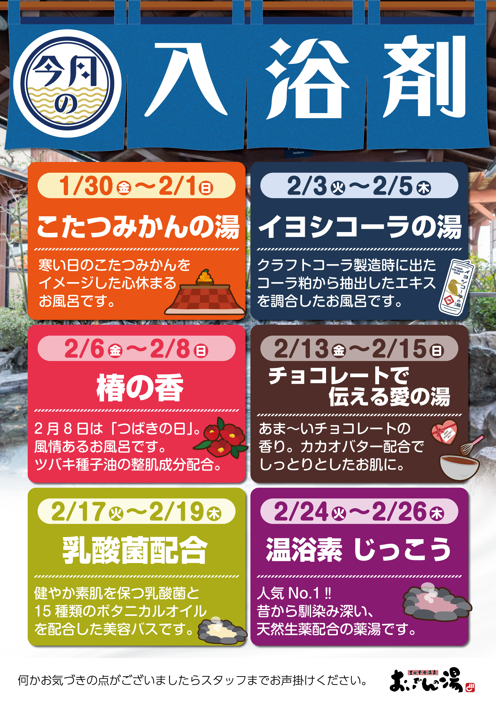 今月の入浴剤…男女いわ風呂にて開催